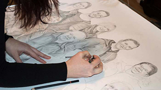Die besondere Eigenschaft der Kohle ist die Tiefenschwärze. Mit dieser Technik lassen sich schwarze Bereiche leichterzeugen. Die Kohlezeichnung ist besonders kontrastreich und überzeugt durch das Zusammenspiel von hell und dunkel.
